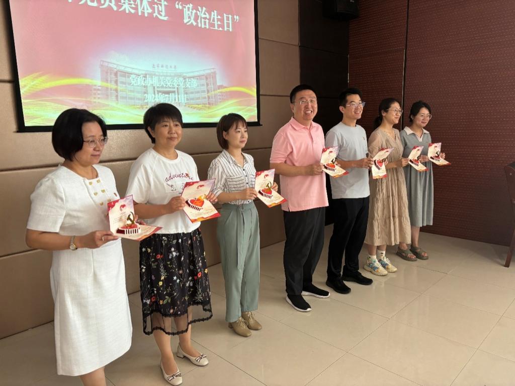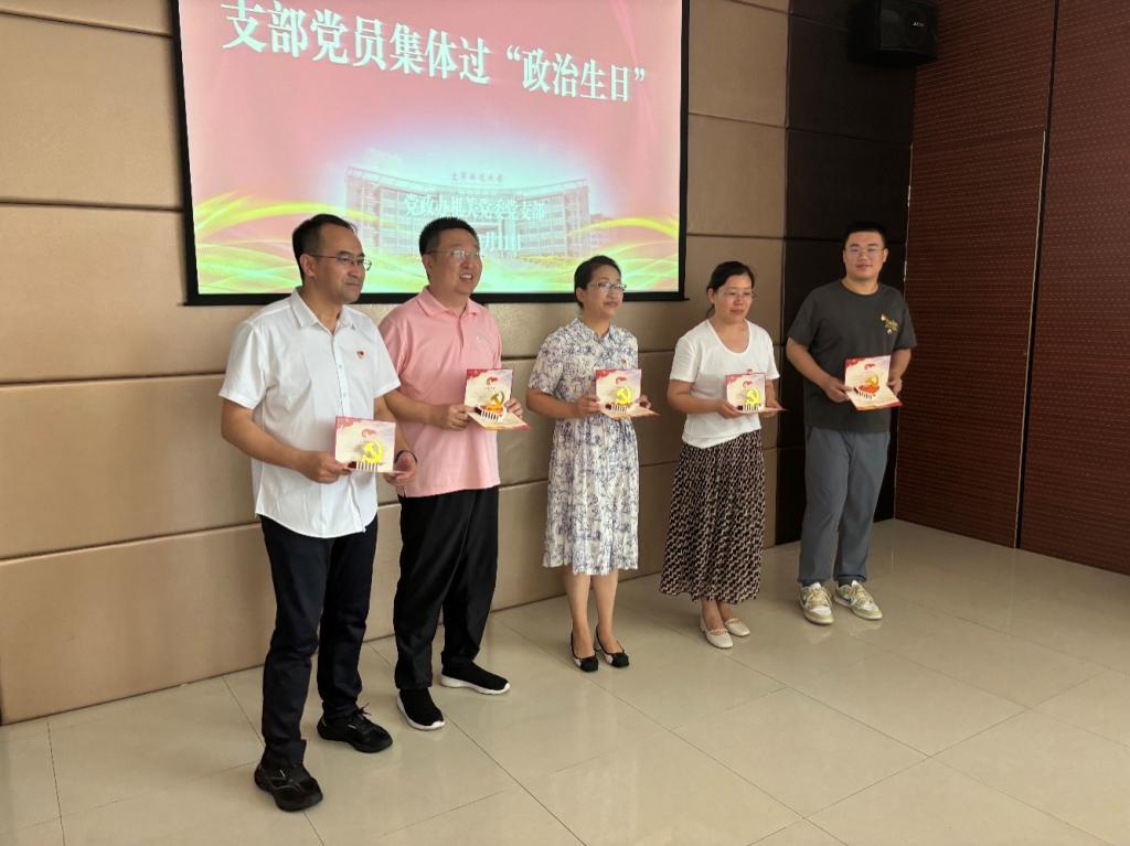 为了让党员感受到组织的关怀,体会到组织的温暖,找到政治归属感,增强集体荣誉感和使命的神圣感,结合党支部实际情况,支部开展了为党员过“政治生日”活动。活动中,机关党委书记张桦楠、支部书记李宁为支部党员发放了“政治生日”贺卡;全体党员重温了入党誓词。