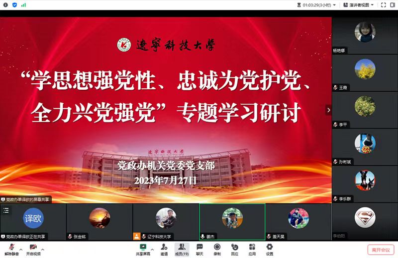 727日,党政办机关党委党支部以线上方式召开党员大会,集中1天的时间开展专题学习。会议由党支部书记李宁主持。校党委书记李平以普通党员身份参加了会议。