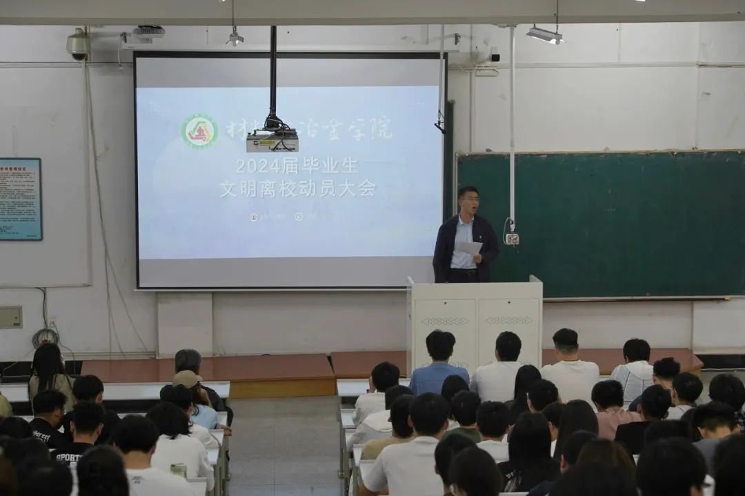 为进一步做好毕业生的安全管理及文明离校工作,确保毕业生顺利、文明、安全地毕业离校。5月30日,学院在一号楼C102召开2024届毕业生文明离校动员会。院党委副书记、副院长兼纪委书记艾英华、全体毕业班辅导员以及2024届各毕业班班委共112人参加会议。