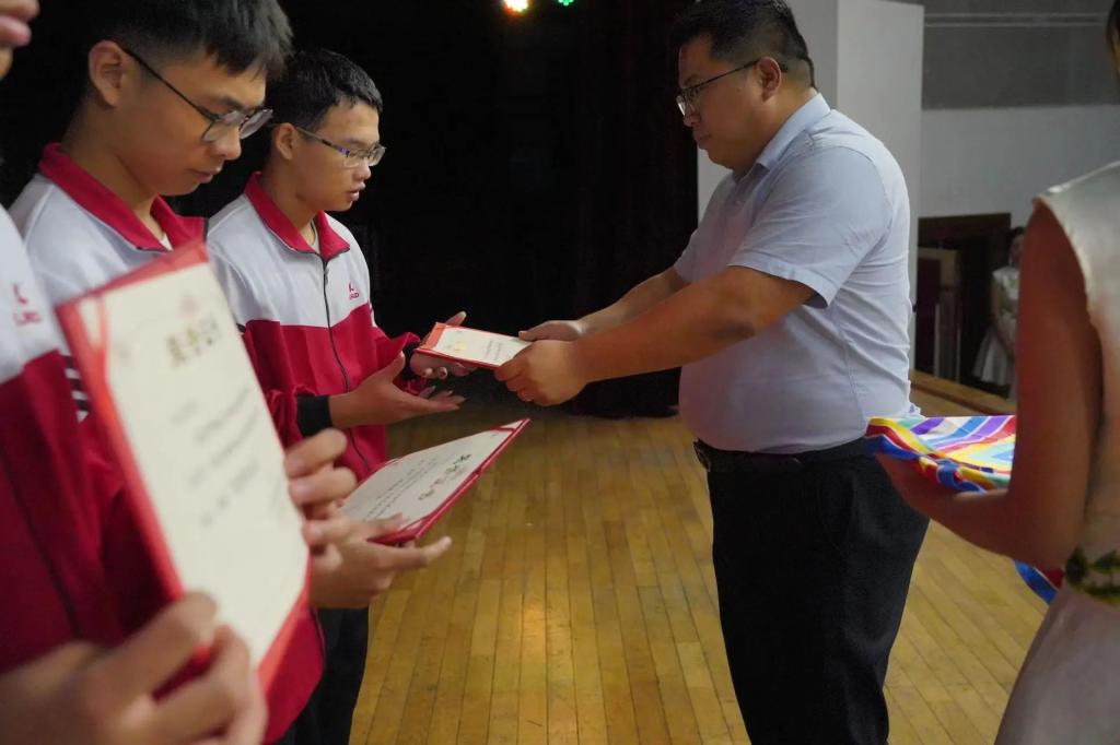 学院领导为2024级新生高考总分成绩优异、单科成绩突出的优秀新生颁发证书,以此鼓励新同学努力学习,在未来的四年学习生活中牢记榜样力量,不断自我提升。