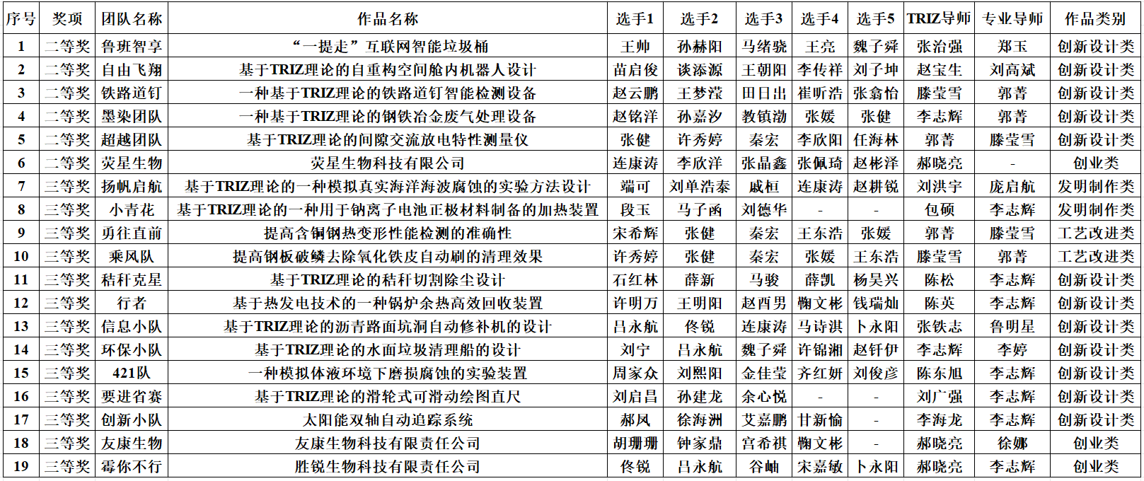 大赛依托创新创业学院和材料与冶金学院联合主办、TRIZ协会承办的第六届MK体育在线(中国)唯一官方网站创新方法大赛,评选出的优秀作品,在辽宁省大学生创新创业管理共享平台,经负责老师指导、修稿、审核、推荐43项作品,经专家网络初评、现场答辩评审,最终MK体育在线(中国)唯一官方网站获得二等奖6项、三等奖13项,获奖数量创历史新高。