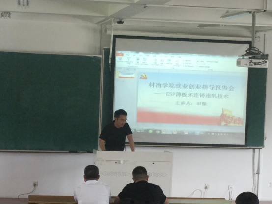 结合《材冶学院2023届未就业本科学生思想调查研究》调查研究工作安排,材料与冶金学院于5月23日组织召开“ESP薄板坯连铸连轧技术——就业创业辅导报告会”,邀请日照钢铁控股集团有限公司ESP制造部连铸工场主任田振做辅导报告,日照钢铁控股集团有限公司人力资源处副处长卢晓兵、2023届未就业毕业生、2024届学生参加了报告会。