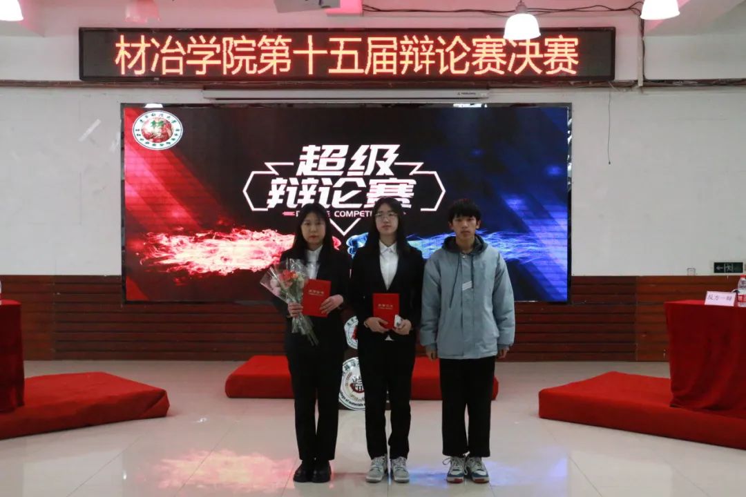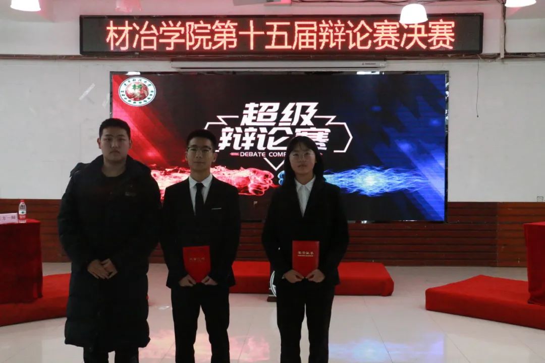 最后获得辩论赛冠军的队伍是book思议队,亚军的队伍是天行地势队,季军的队伍是真理永存队。材控233郑昕,能源232李培宁两名同学获最佳辩手,能源233张雨晨,材控232叶雨欣两名同学获优秀辩手,李海霞,史浩宇,许正豪,宋佳佳,刘畅,迟顺馨六名同学获最佳领队。李茂融,于江铖,许锦湘,张浩然,杨荣蕊,王若男六名同学获优秀领队。