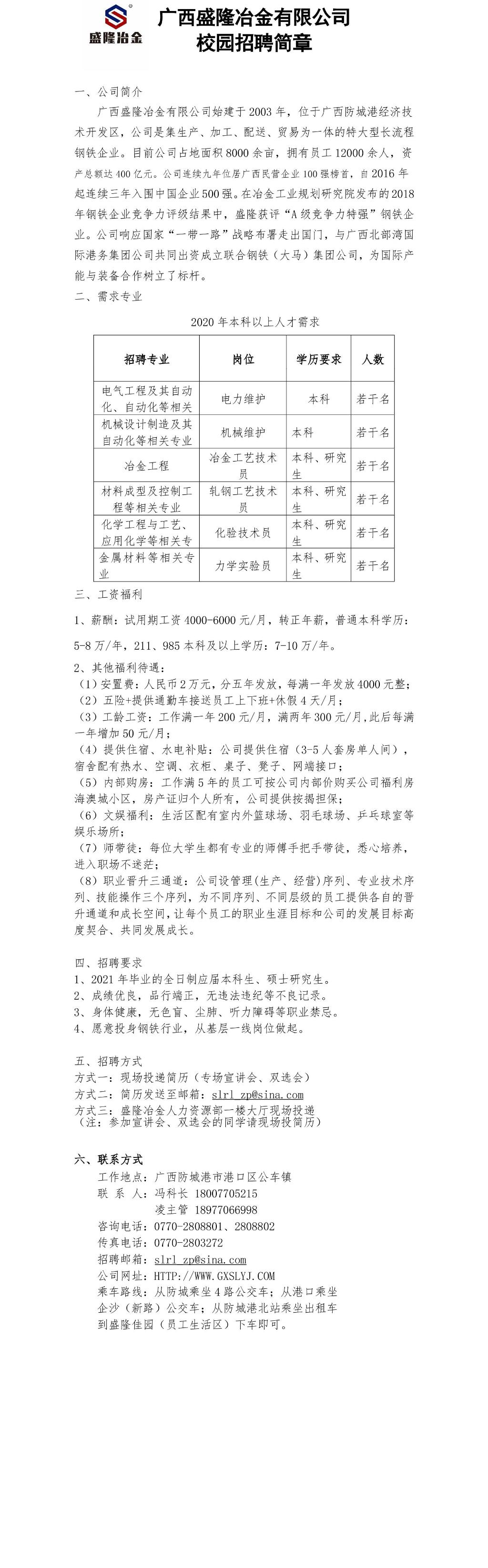 盛隆冶金校园招聘简章