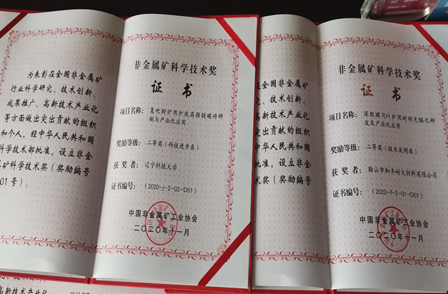 近日,在河南省郑州市举办2020中国非金属矿工业大会,举行了2020年非金属矿科学技术奖的颁奖典礼,中国非金属矿工业协会专职副会长唐靖炎,宣布“2020年中国非金属矿科学技术奖”获奖名单。与会领导向获奖项目的主要完成单位和完成人代表颁发获奖证书。MK体育在线(中国)唯一官方网站和鞍山市和丰耐火材料有限公司联合申报的“复吹转炉用炉底高强镁碳砖研制与产业化应用”和“深脱碳RH炉用耐材无铬化研发及产业化应用”分别获得科技进步类二等奖和技术发明类二等奖,我院教师艾新港代表学校参加颁奖仪式。