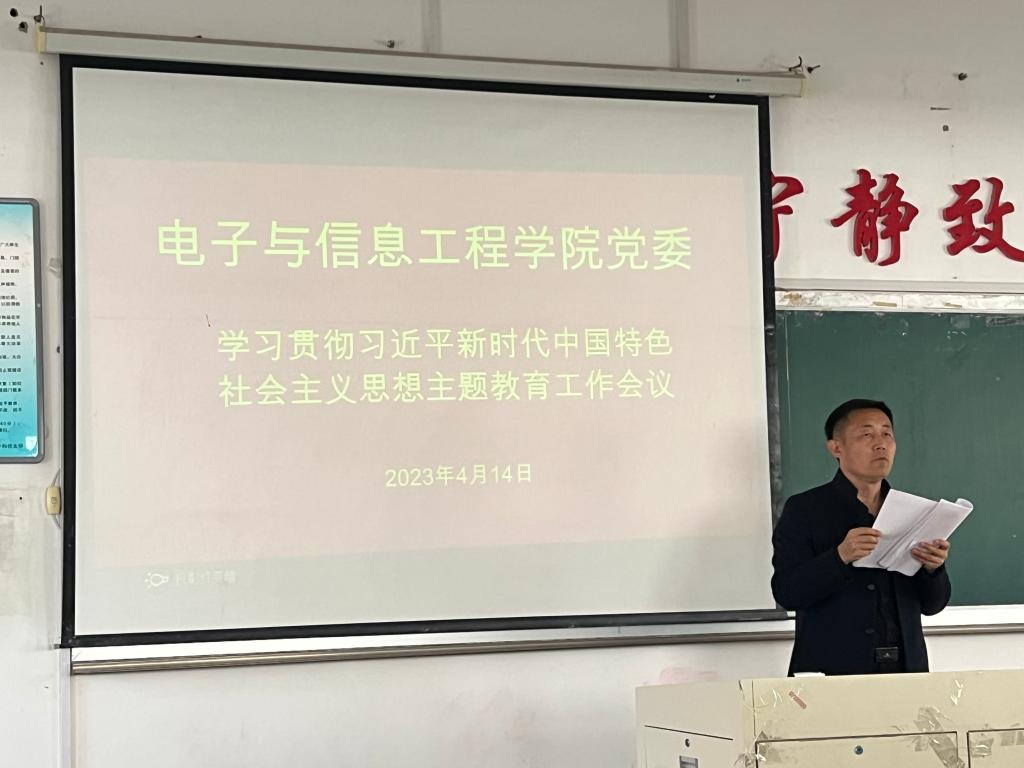 2023年4月14日中午,电信学院党委在博闻楼九合召开学习贯彻习近平新时代中国特色社会主义思想主题教育工作会议。会议由学院党委书记王会立主持,研究生工作部部长李激光莅临指导。