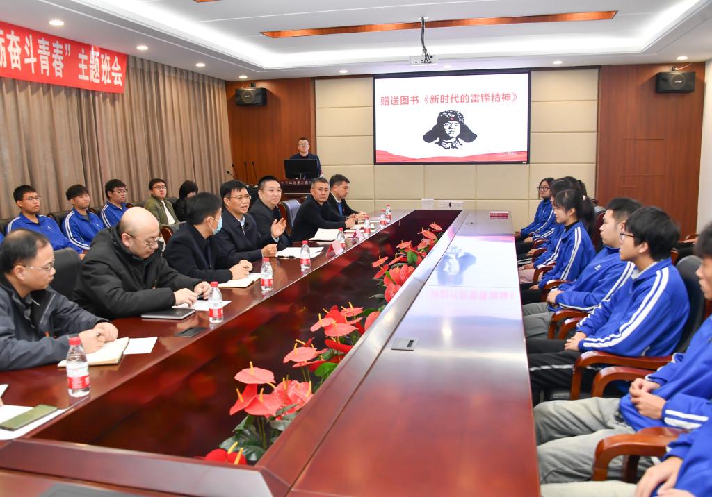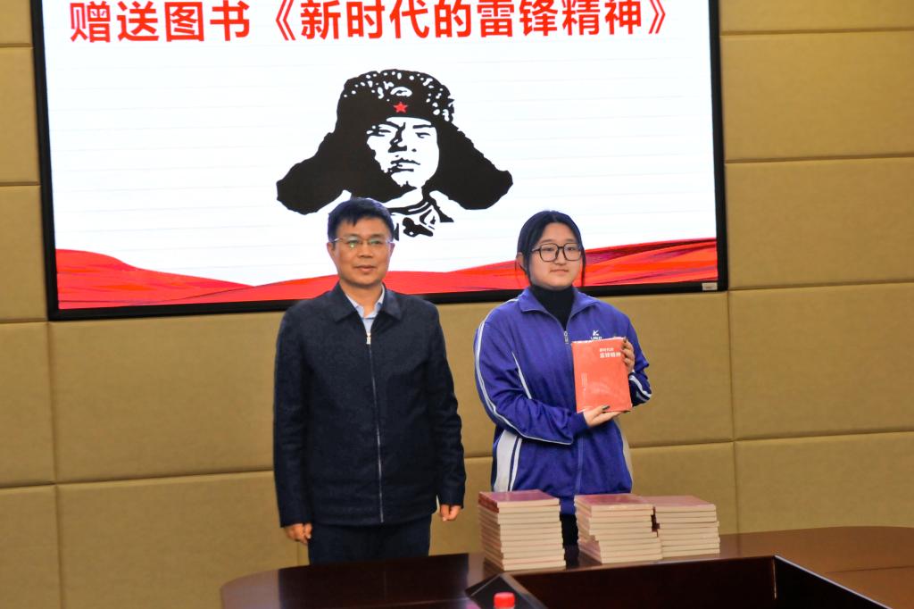 班会期间,李平就《雷锋日记》中的“雷锋七问”与同学们互动交流,并为同学们赠送《新时代的雷锋精神》一书。