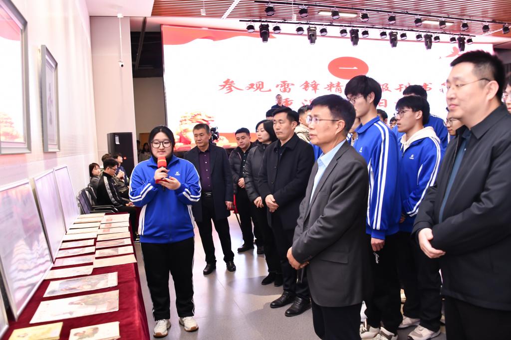 李平与师生共同参观了雷锋精神主题藏品,演唱歌曲《学习雷锋好榜样》。电信学院学生志愿者代表电气22-1班佟其聪、自动化23-3班夏冬晨分享了在志愿服务中的故事,号召同学们积极参加志愿服务活动,雷锋精神中汲取奋进力量。
