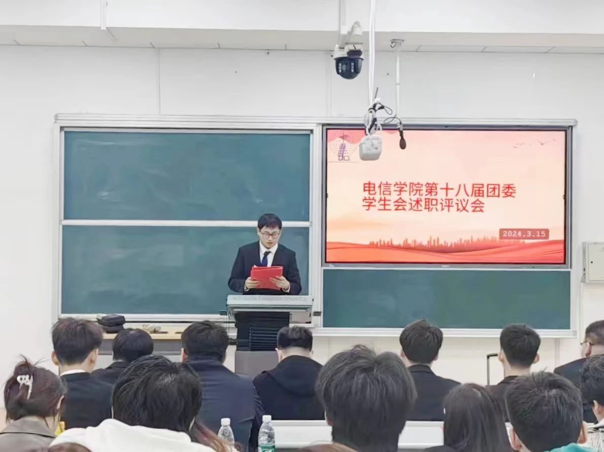 3月15日,电信学院第十八届团委学生会述职评议会议在博闻楼一合召开。此次会议由办公室负责人王艺雄主持,团工作负责人孙文鹏以及全体学生骨干参加。
