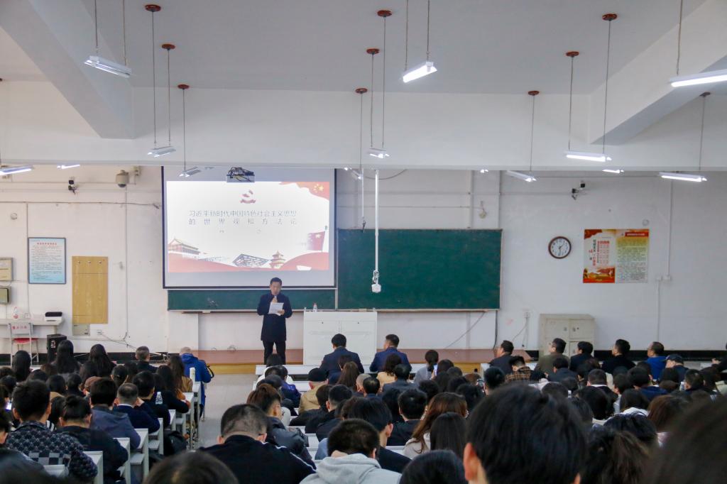 为深入学习贯彻党的二十大精神,根据学校党委安排和部署,3月28日,电子与信息工程学院、马克思主义学院、应用技术学院和后勤与基建管理处四个单位于博学楼C202联合组织召开学习贯彻党的二十大精神宣讲报告会,特别邀请了学校党委常委、宣传部部长张佳亮作专题宣讲报告,电子与信息工程学院党委书记王会立主持会议,四个单位350余名师生参加会议。