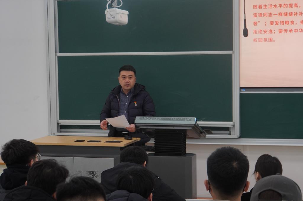 本次活动分为三个环节,首先由辅导员于家鹏老师做“雷锋精神”主题报告。报告分别从集体观看雷锋剪影、介绍雷锋生平简介、领学雷锋日记三个部分将雷锋短暂而光辉的一生翔实再现。随后,电信学院党委副书记由济恺作总结讲话,由济恺表示,随着生活水平提高,物质生活的丰富,今天的我们虽然不再像当年的雷锋同志一样缝缝补补,但我们青年学子仍要时刻牢记“成由勤俭败由奢”;要爱惜粮食,拒绝浪费;要消费合理,拒绝攀比;要吃苦在前,拒绝安逸;要传承中华民族优良传统,共同营造勤俭节约、积极健康的校园氛围。最后全体党员走出教室开展志愿服务,围绕电信楼清理白色垃圾及清扫实验室,美化校园环境,发扬“不怕苦、不怕脏、不怕累”的精神,充分展现新时代党员的信仰与担当。