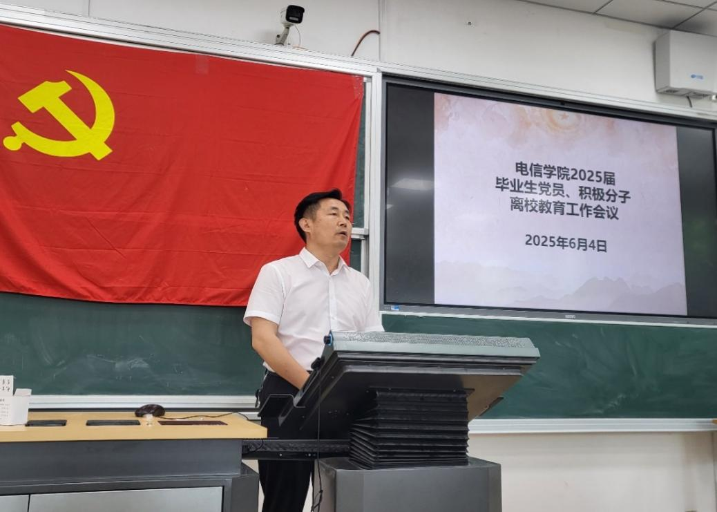 为进一步加强毕业生党员、积极分子教育管理,扎实做好毕业生党员教育工作,激励毕业生党员坚定理想信念、敢于担当作为,电信学院党委于6月4日在博闻楼一合开展了“2025届毕业生党员、积极分子离校前集中教育”活动,2025届全体毕业生党员、积极分子参加活动。