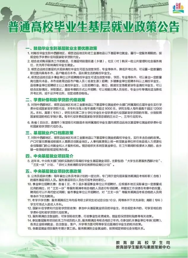 普通高校毕业生基层就业政策
