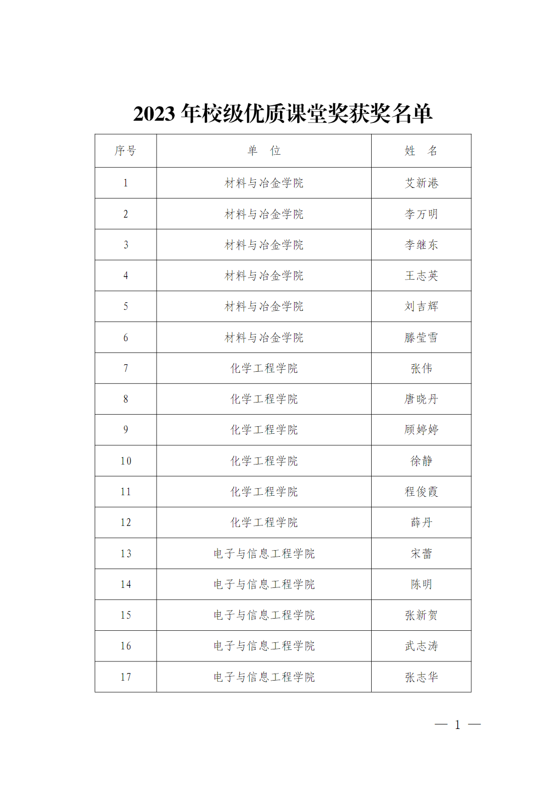 2023年校级优质课堂奖获奖名单