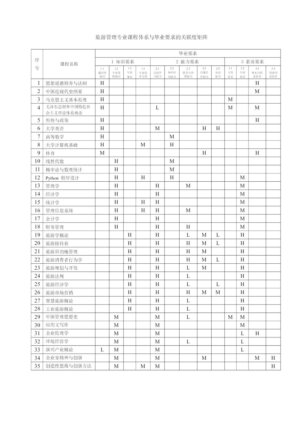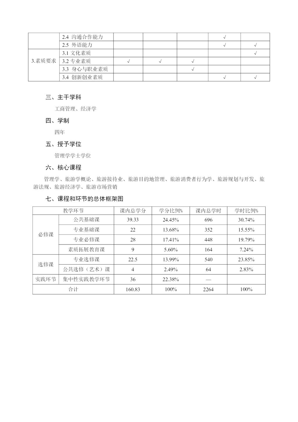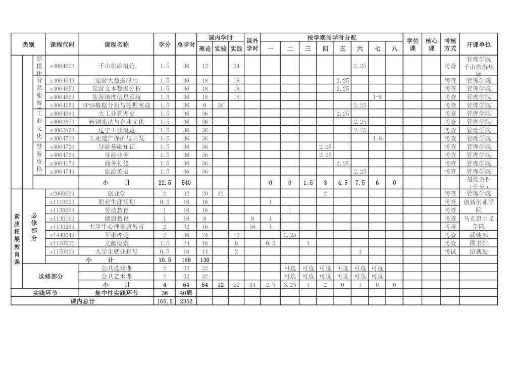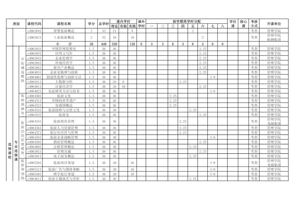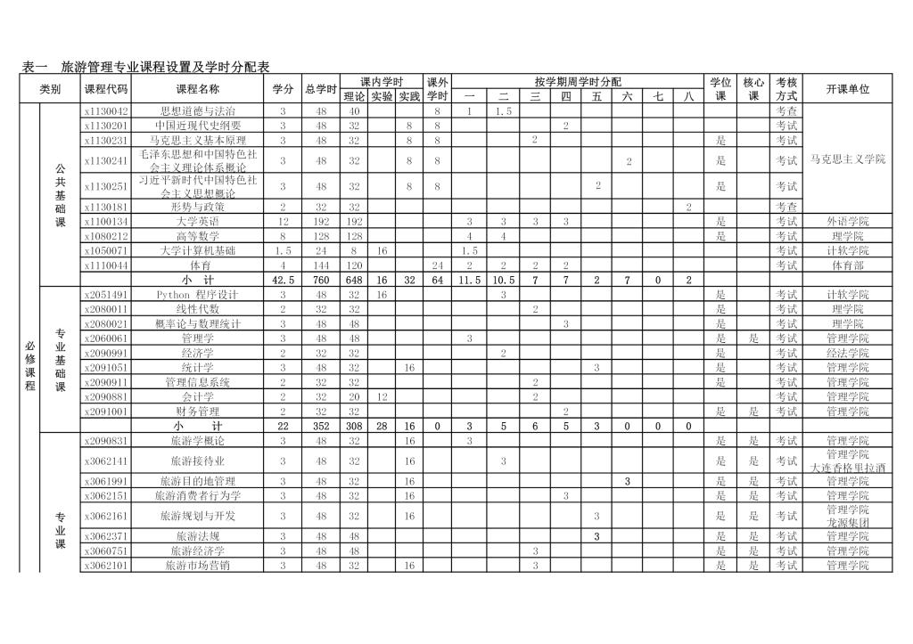 旅游管理专业培养方案