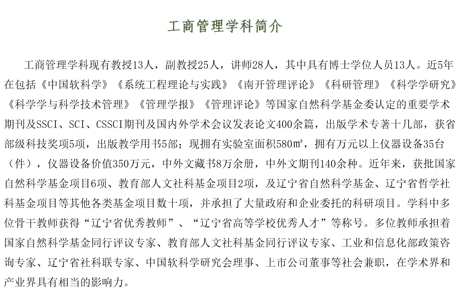 工商管理学院学科简介