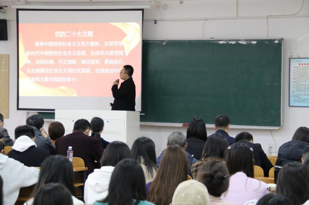 为深入学习宣传贯彻党的二十大精神,落实好《中共MK体育在线(中国)唯一官方网站委员会关于深入学习宣传贯彻党的二十大精神的方案》,3月28日下午,工商管理学院党委于博学楼C108教室主持召开学习贯彻党的二十大精神宣讲报告会,会议由管理学院党委书记董文武主持,管理学院师生代表、继续教育学院、科技园教职工代表参加。