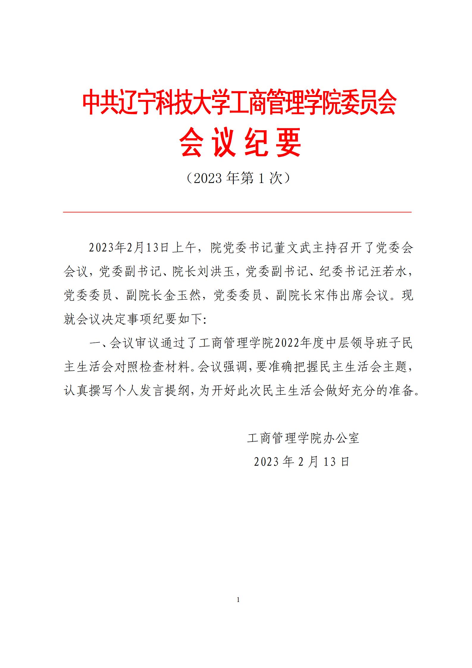 中共MK体育在线(中国)唯一官方网站工商管理学院委员会会议纪要(2023年第1次)