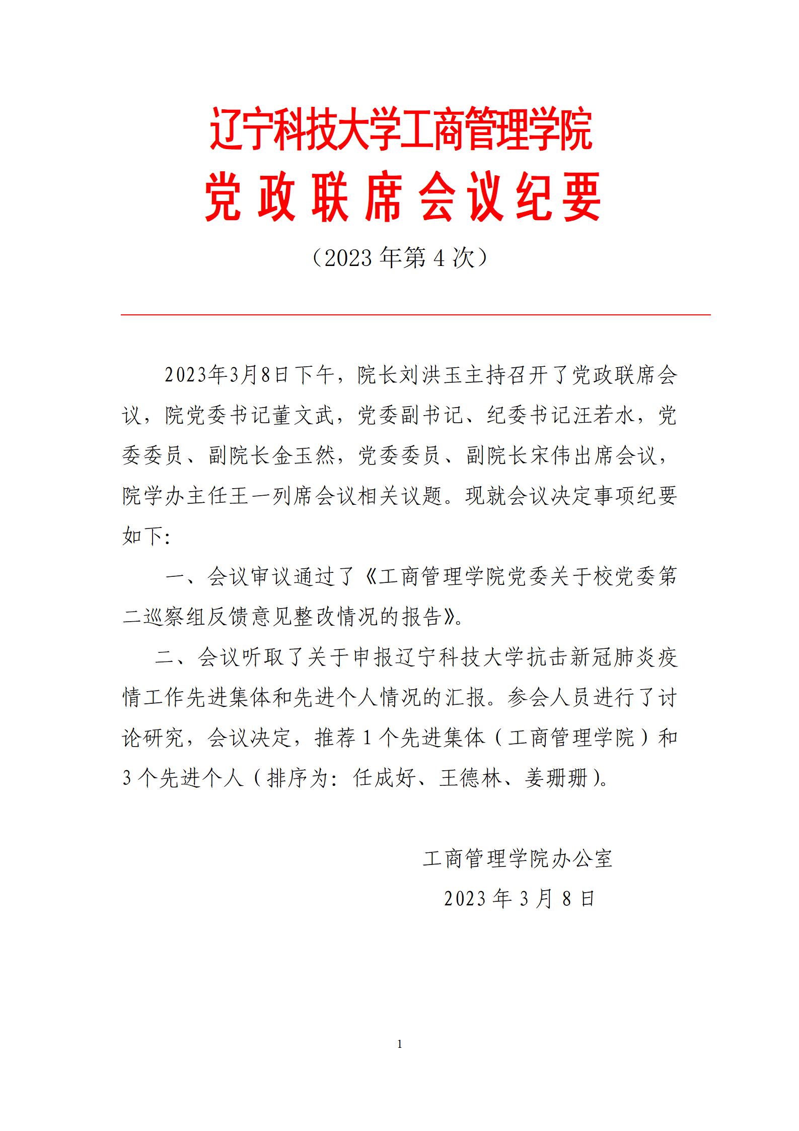 MK体育在线(中国)唯一官方网站工商管理学院党政联席会议纪要(2023年第4次)