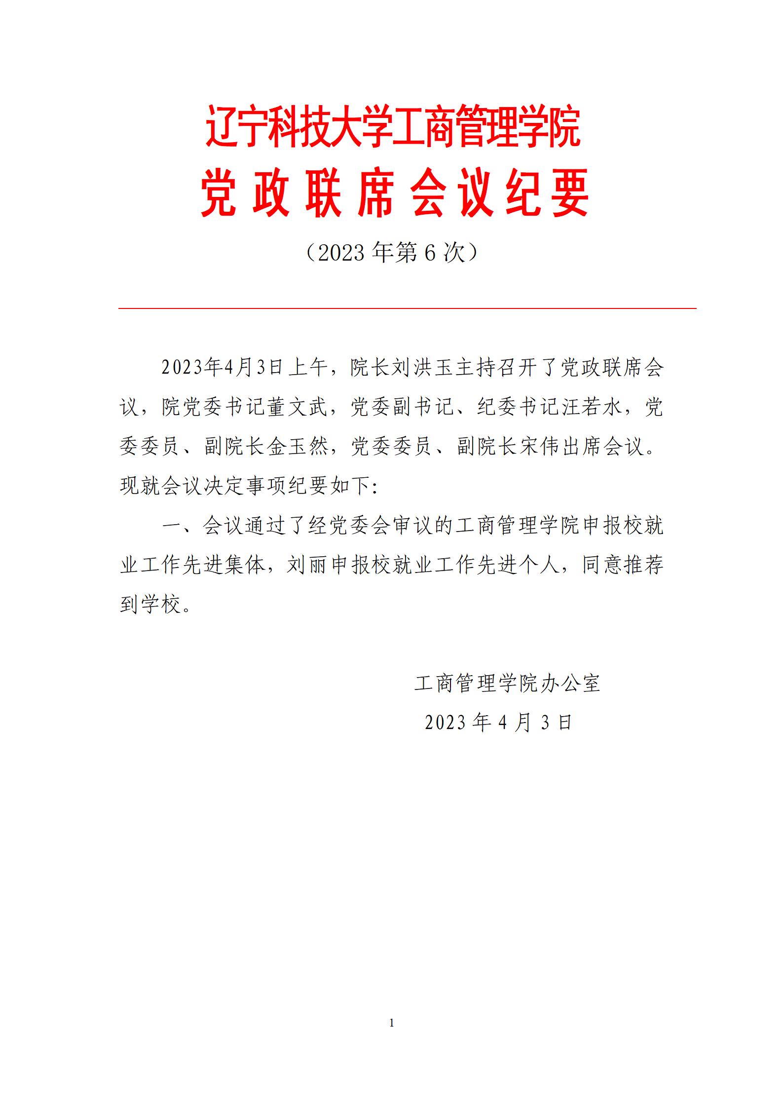 MK体育在线(中国)唯一官方网站工商管理学院党政联席会议纪要(2023年第6次)