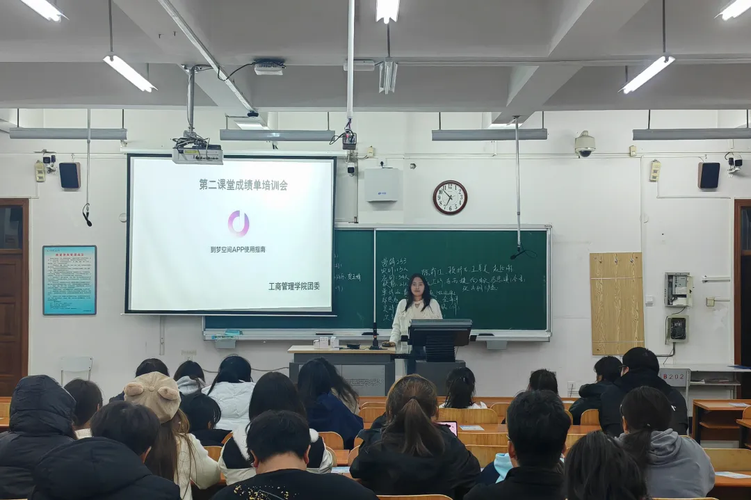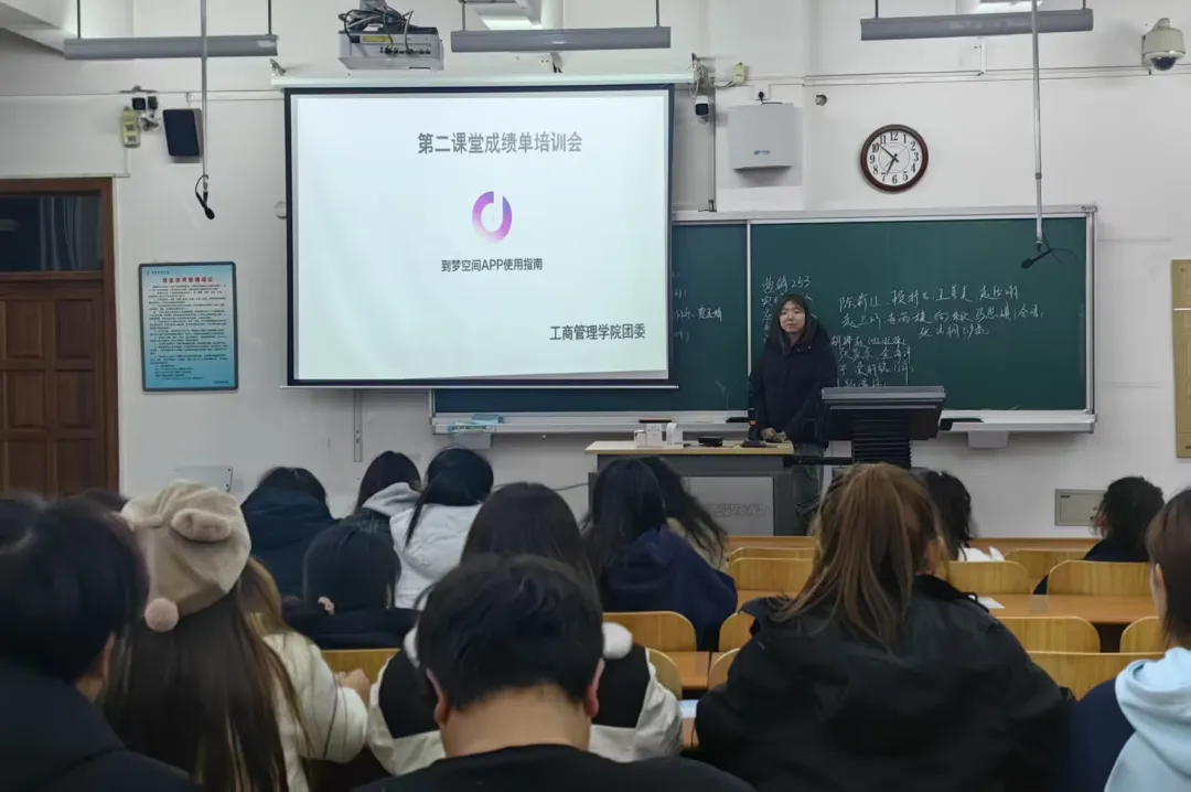 为帮助2025级新生深入了解第二课堂制度,熟练掌握“到梦空间”操作流程,激发学生参与校园活动的积极性,工商管理学院分团委于10月29日深入新生自习室,开展“到梦空间”系统使用专题培训会,全体2025级新生参会。