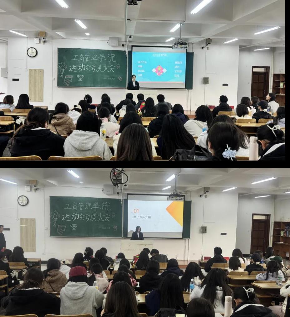 动员会上,院学生会体育部姜雪琦从体育运动的价值切入,强调校运会不仅是竞技的舞 台,更是锤炼意志、凝聚团队的重要契机。她指出,参与体育赛事能有效促进学生身心协调 发展,培养“敢打敢拼、永不言弃 ”的精神品格,号召同学们以行动诠释“超越自我 ”的体 育内涵。学生会各部门通过图文讲解与往届赛事视频展播,生动呈现了径赛、田赛及团体项 目的规则与亮点。视频中管院学子挥洒汗水、团结协作的画面,点燃了现场学生的参赛热情, 掌声与欢呼声此起彼伏。
