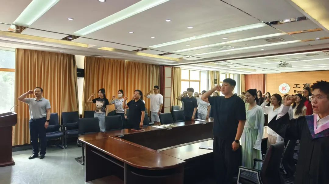 6月13日,工商管理学院组织开展2025届毕业生党员离校教育活动。学院本科生、研究生共50名毕业生党员全部参加,院党委书记田树学、党委副书记汪若水出席活动。