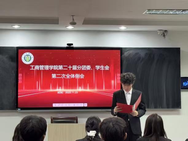 11月23日晚,工商管理学院第二十届学生会第二次工作例会在学院B511教室顺利举行,本次会议由办公室负责人马驰主持,分团委、学生会全体成员共同参与,旨在总结近期工作进展、明确后续任务方向,推动团学工作高效有序开展。