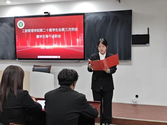 学生会主席首先发表开场讲话。他简要回顾了学生会近期在学术活动、文体赛事、志愿服务等方面开展的重点工作,肯定了全体骨干在各项活动中展现出的担当精神与协作能力,同时也指出了工作中存在的沟通效率不足、细节把控不严等问题。随后,他强调了本次述职评议会的重要意义,鼓励各位骨干坦诚交流、实事求是,通过复盘总结实现自我提升,为学生会后续工作的高质量推进奠定基础。
