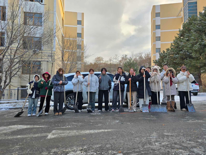 初雪漫校园,青春赴新程。随着冬日首场降雪降临,校园道路被积雪覆盖,给师生出行带来诸多不便。工商管理学院以雪为令、闻雪而动,开展除雪活动,用铁锹与扫帚为校园开辟安全通道,在寒风中书写新时代青年的奉献与热忱。 活动通知一经发布,学院学生积极响应、踊跃报名。除雪现场,尽管寒风凛冽、积雪深厚,但大家热情高涨、分工明确:有的挥舞铁锹破冰除雪,有的手持扫帚清扫残雪,有的默契配合搬运雪堆,现场一派热火朝天的劳动景象。这场除雪活动,成了新生们最生动的“集体劳动课”——从一开始的陌生拘谨,到后来的默契配合,短短几个小时,凝聚力就在扫雪的进程中悄然形成。正是同学们的辛勤付出,一条条整洁通畅的道路逐渐显现。