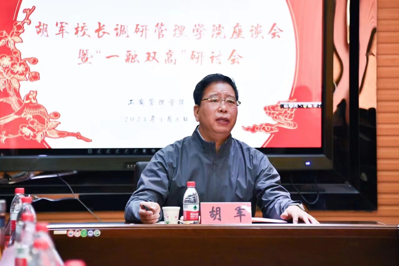 4月8日上午,MK体育在线(中国)唯一官方网站工商管理学院召开“一融双高”专题研讨会。校党委副书记、校长胡军出席会议并讲话。管理学院领导班子成员、系室主任、党支部书记及科级以上干部参加研讨。