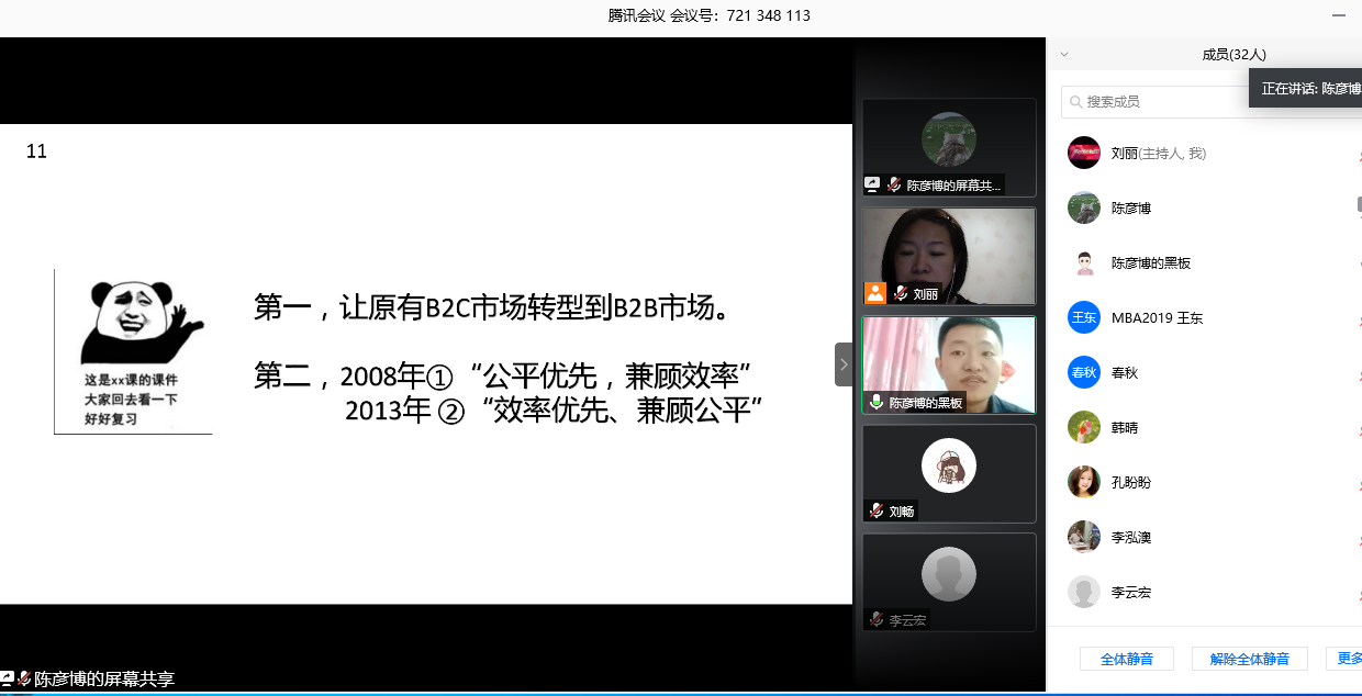 2020年5月9日晚,MK体育在线(中国)唯一官方网站MBA教育中心第七届管理案例精英赛成功举行。2019级全体参加了此次比赛。MBA教育中心副主任朱晓林教授,校外导师邵岩、吕衍国,管理综合案例课程任课老师李云宏、刘丽担任此次比赛评委。