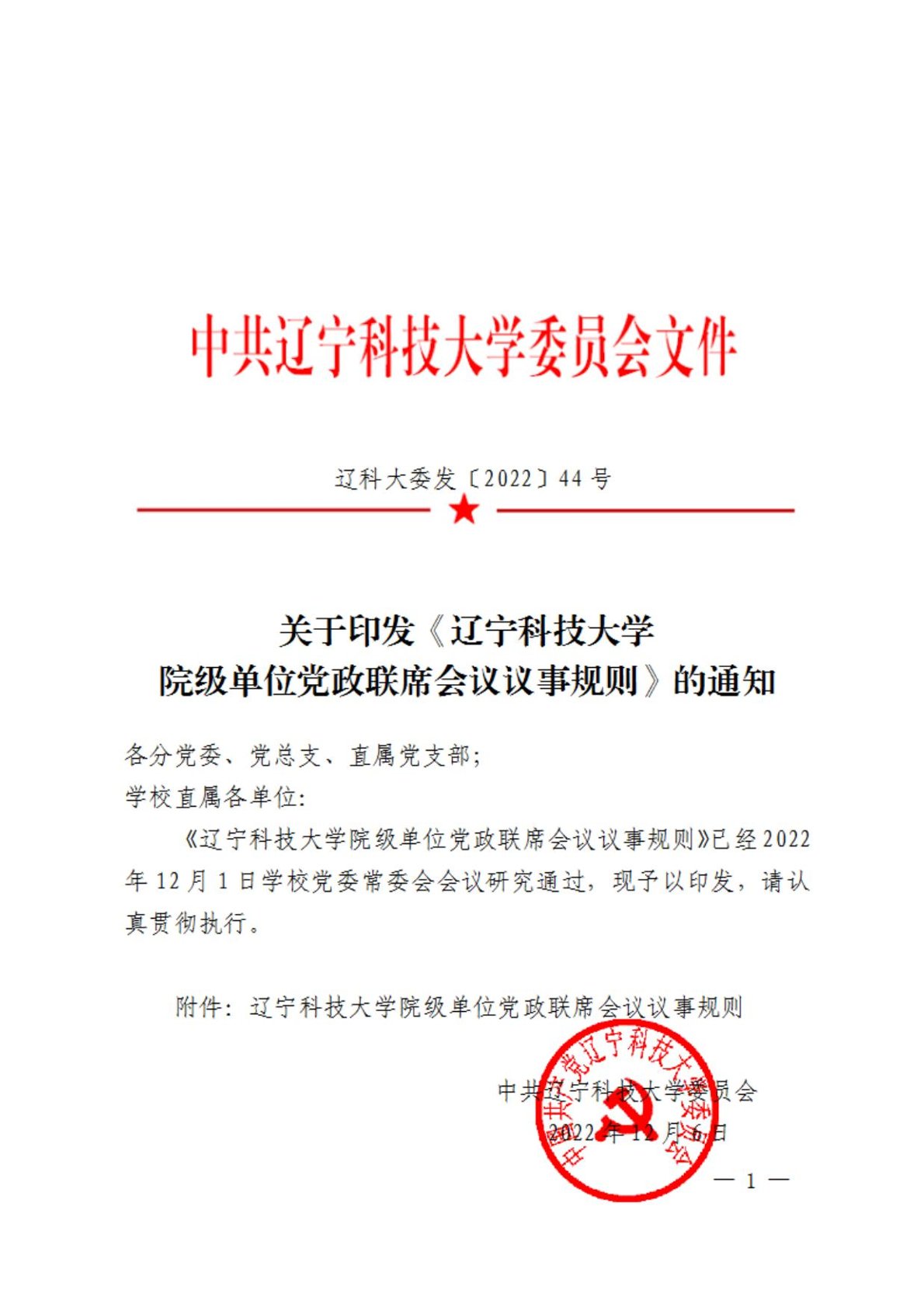 关于印发《MK体育在线(中国)唯一官方网站院级单位党政联席会议议事规则》的通知