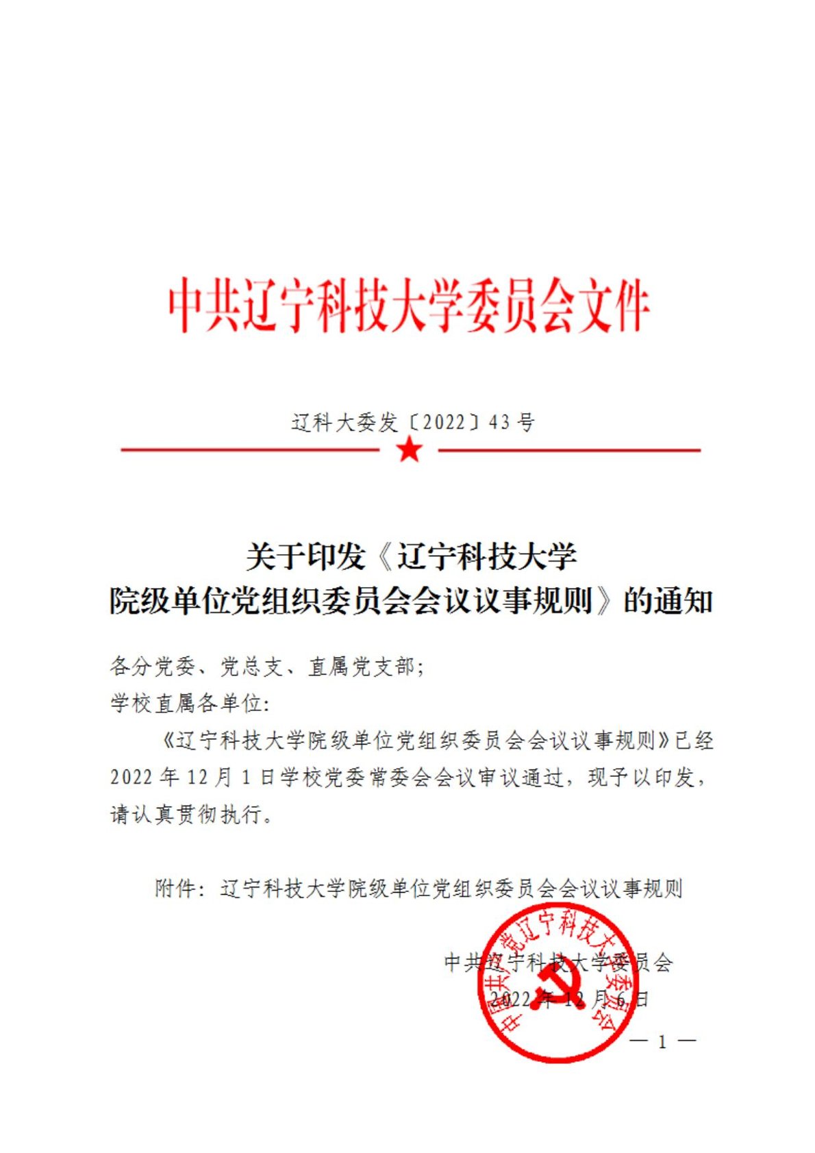 关于印发《MK体育在线(中国)唯一官方网站院级单位党组织委员会会议议事规则》的通知