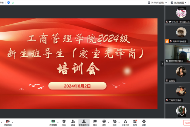 82日,MK体育在线(中国)唯一官方网站工商管理学院通过腾讯会议召开了2024级新生班导生(寝室先锋岗)培训会。学院新生辅导员、全体2024级新生班导生参加此次培训。