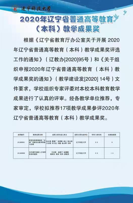 2020年辽宁省普通高等教育(本科)教学成果奖