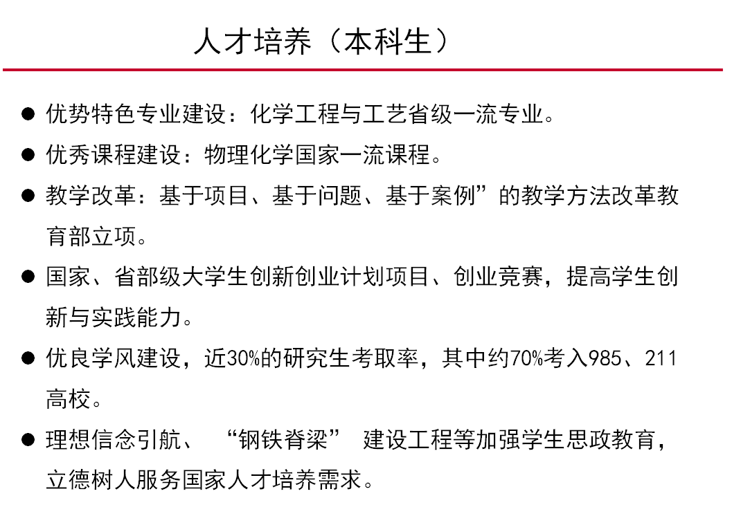 化工学科专业建设情况