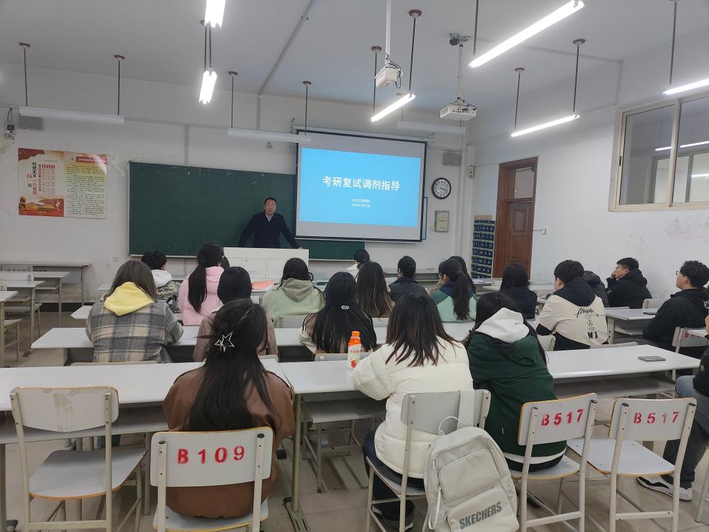 会上,指导教师结合自身组织考研复试的经验从考研复试的前期准备、应试心理和应试技巧等方面进行指导。强调同学们要加强沟通,及时与报考学校联系,保证信息畅通;要端正态度,认真梳理、加快复习和巩固专业重点;要放松心态,积极应对复试时时遇到的各种问题;要保持冷静,灵活处理,可以多与专业教师和已考上研究生的同学多咨询请教;要积极应对,做好复试调剂两手准备,及时掌握调剂信息,把握调剂时机,不要犹豫,患得患失。相关人员详细介绍了调剂系统开放时间、志愿填报、调剂政策、调剂院校选择、面试等方面问题并就同学们现场提出问题进行了耐心讲解。