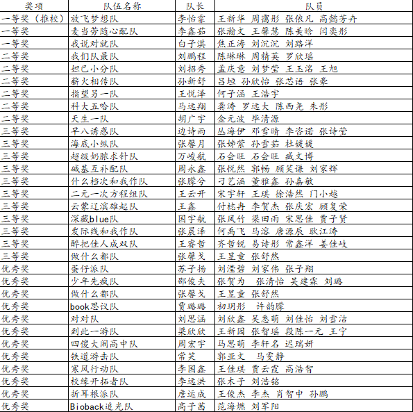 评委对参与本次实践活动的团队进行了多方面考量与客观公正的评估,现将排名结果予以公示。