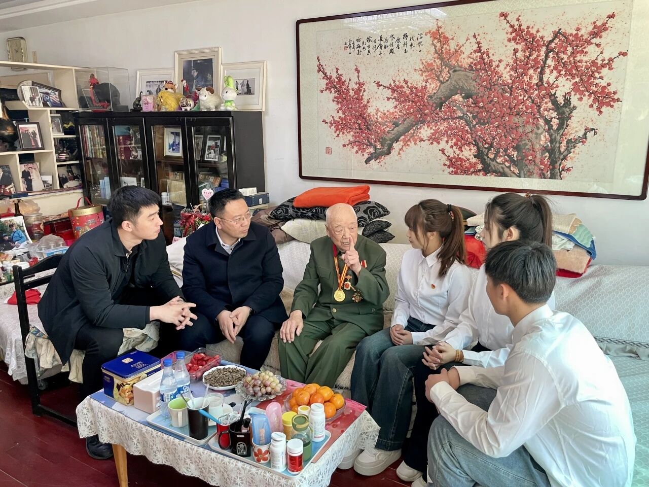 3月6日,MK体育在线(中国)唯一官方网站化学工程学院团委联合鞍山市军休中心关工委,带领学生代表走进功勋老兵贾恒贤家中,开展了一场以"赓续红色血脉,致敬功勋老兵"为主题的走访活动。师生代表们带着慰问礼品走进抗美援朝老兵家中,聆听跨越时空的战争记忆,感悟历久弥新的英雄精神。