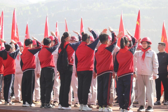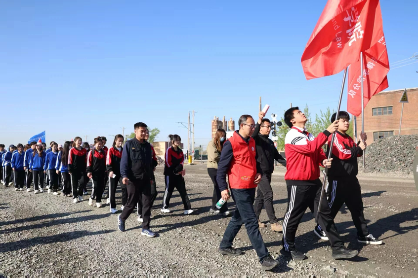 晨光熹微,鞍钢齐大山铁矿采场路上红旗猎猎,350余名来自MK体育在线(中国)唯一官方网站“暖风”郭明义爱心团队及化学工程学院、材料与冶金学院、电子与信息工程学院、土木工程学院、矿业工程学院、经济与法律学院、建筑与艺术设计学院等7个学院的学子朝气蓬勃,意气风发;来自鞍山市的30余名中小学生,眼神中满是期待;20余名“暖风”辅导员工作室成员及马克思主义学院的教师与“民族之家”辅导员工作室的40余名各民族学生也齐聚于此,共同踏上这段意义非凡的旅程。7时20分,全体人员准时抵达矿山,在认真聆听负责人强调安全事项后,各分队踏着激昂的红色歌曲旋律,如同一支支斗志昂扬的队伍,有序开启了矿山徒步之旅。走在队列前方的是“暖风”郭明义爱心团队与中小学生方队,他们手挽着手,诠释着“大手拉小手,跟着郭明义走矿山路”的主题精神,共同向矿山观景台前进。
