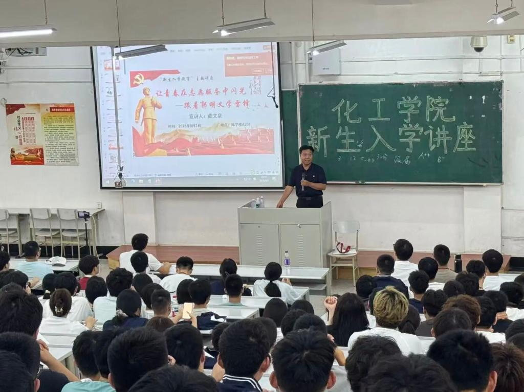 化工学院辅导员、校“暖风”郭明义爱心团队曲文泉作理想信念教育:让青春在志愿服务中闪光—跟着郭明义学雷锋。他讲述“感动中国”2010年度人物郭明义的事迹,介绍他总为他人着想、无私奉献的大爱胸怀。还介绍了MK体育在线(中国)唯一官方网站创新机制、深化内涵,打造“跟着郭明义学雷锋”活动品牌的举措,以及“暖风”郭明义爱心团队开展助残助困、社区服务等众多志愿服务活动的情况,展现团队为鞍山创建全国文明城市所做的贡献。此次讲座,让新生们深刻感受到雷锋精神与志愿服务的力量,助力他们在大学开启充满爱心与担当的青春篇章。