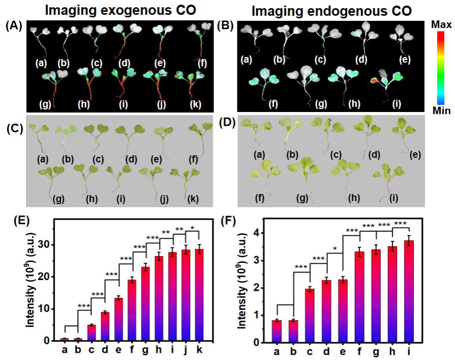 一氧化碳(CO)作为一种重要的气体信号分子,在生物体内扮演着复杂而关键的双重角色。开发特异性强、灵敏高的检测方法用于可视化监测动植物样本中CO水平变化,对于生物医学研究、植物科学和环境监测等领域至关重要。然而,现有技术缺乏能够跨物种、实时、原位和高灵敏检测CO水平动态变化的有效工具,尤其难以穿透致密的植物组织,阻碍了其在疾病治疗与植物对非生物胁迫响应中“双面使命”的深入理解和应用。