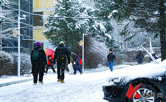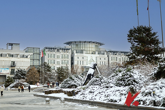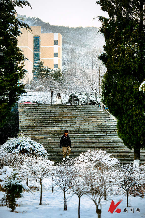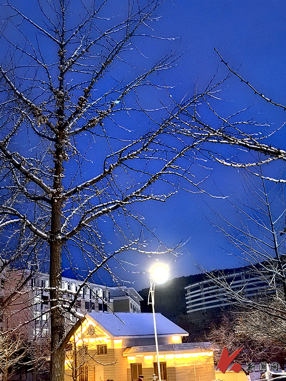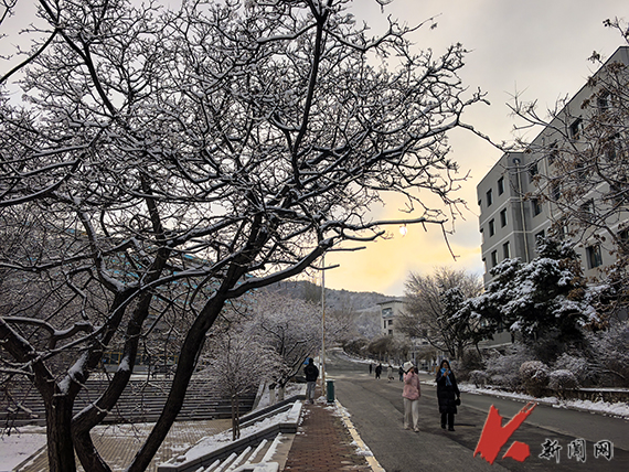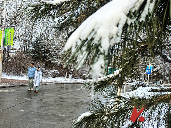 瑞雪应约至,岁岁是丰年。今冬的第一场雪悄然而至。雪花纷纷扬扬,在校园中欢快地舞动。大地被雪白覆盖,树枝上挂满了银霜。湖面结上了一层晶莹的冰,镜子般倒映出蓝蓝的天,世界仿佛更加安静。美景如画、如诗、如梦,让我们陶醉其中感受雪之意境。