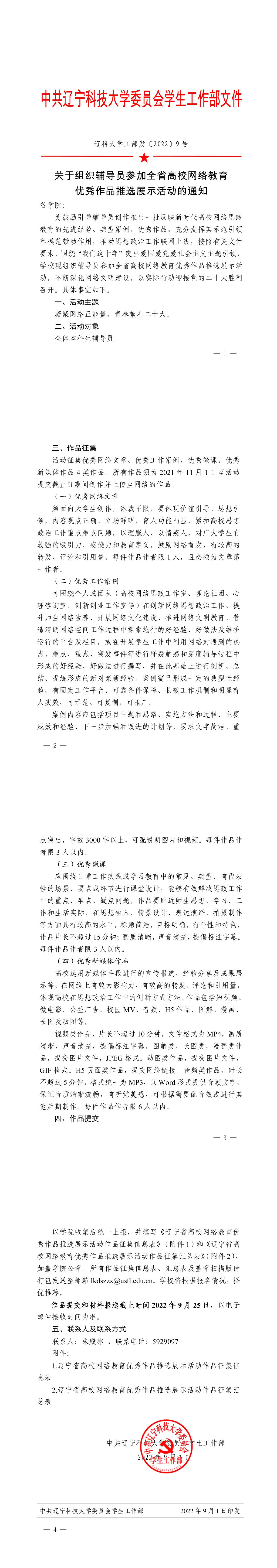 关于组织辅导员参加全省高校网络教育优秀作品推选展示活动的通知