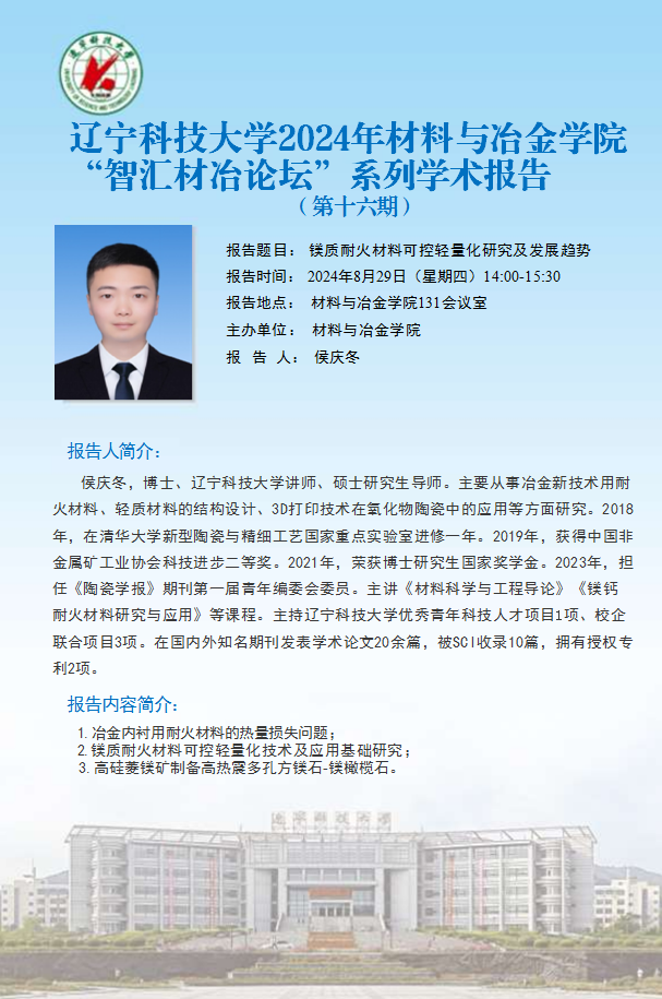 学术预告:镁质耐火材料可控轻量化研究及发展趋势