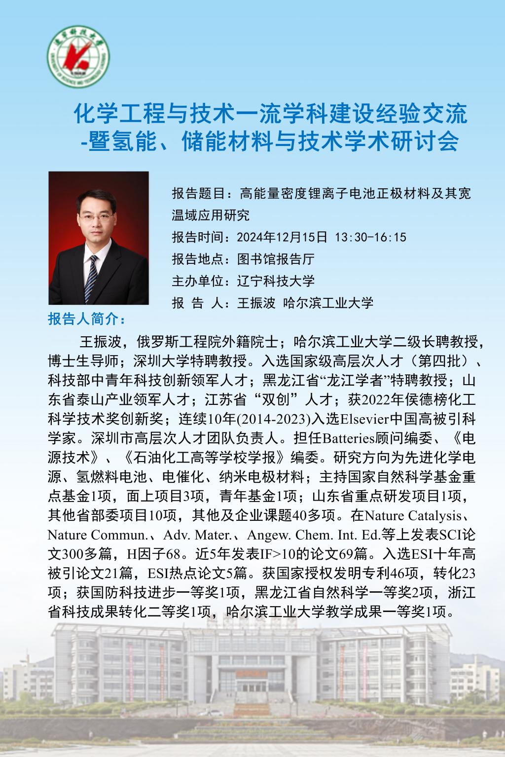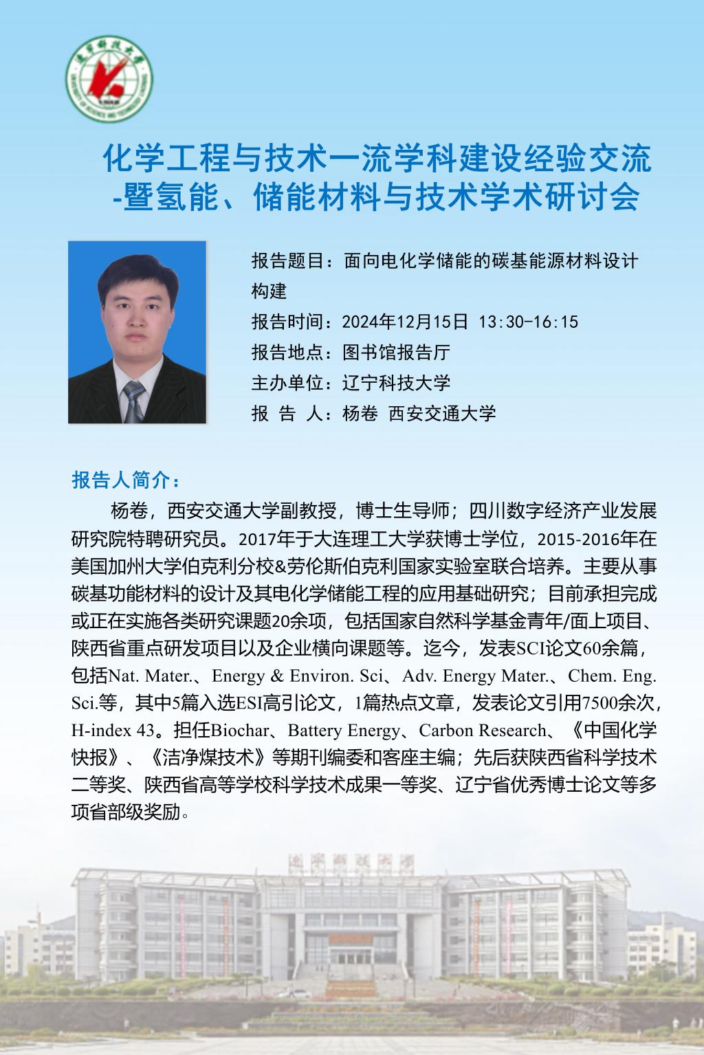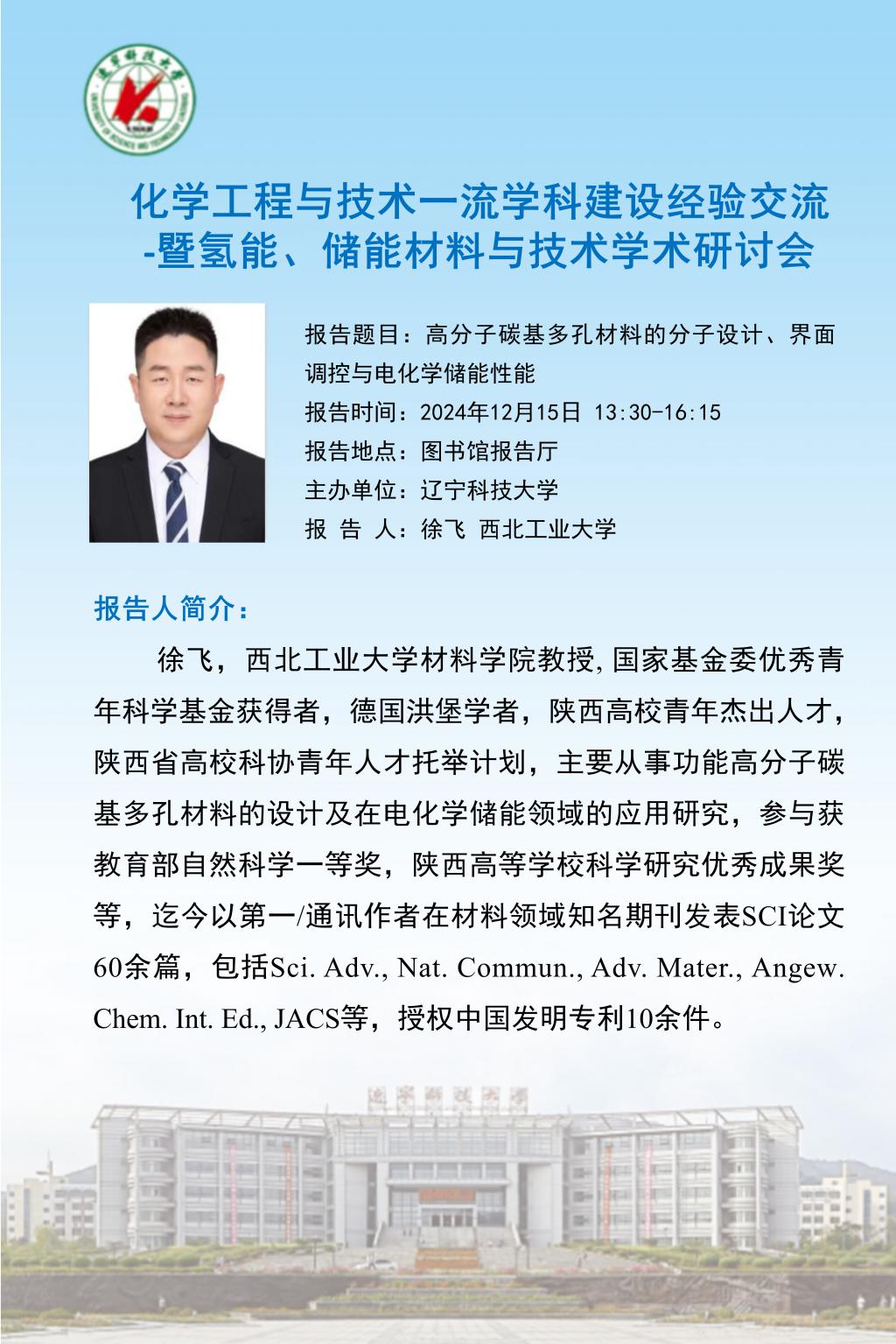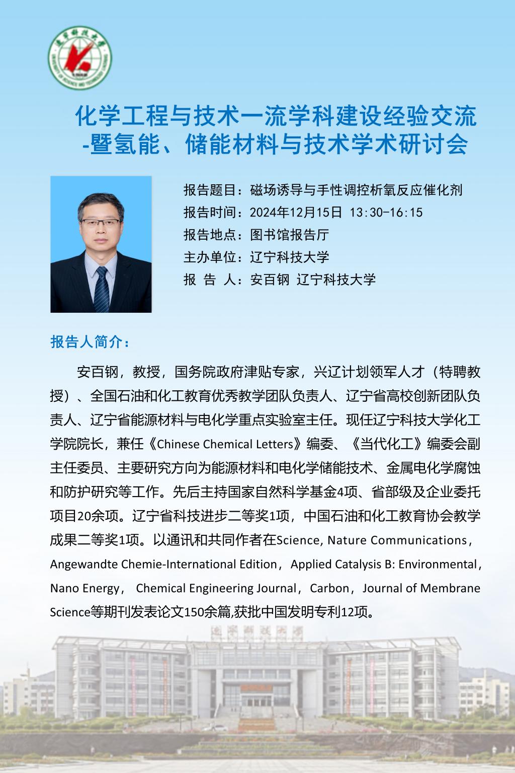 学术预告:化学工程与技术一流学科建设经验交流 -暨氢能、储能材料与技术学术研讨会