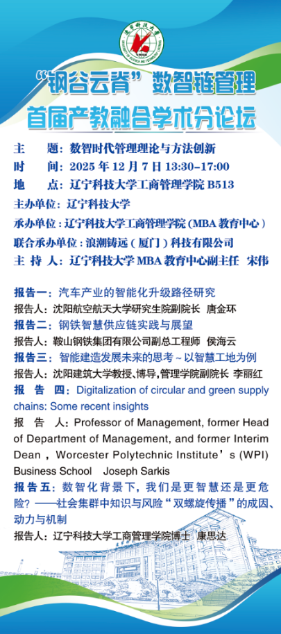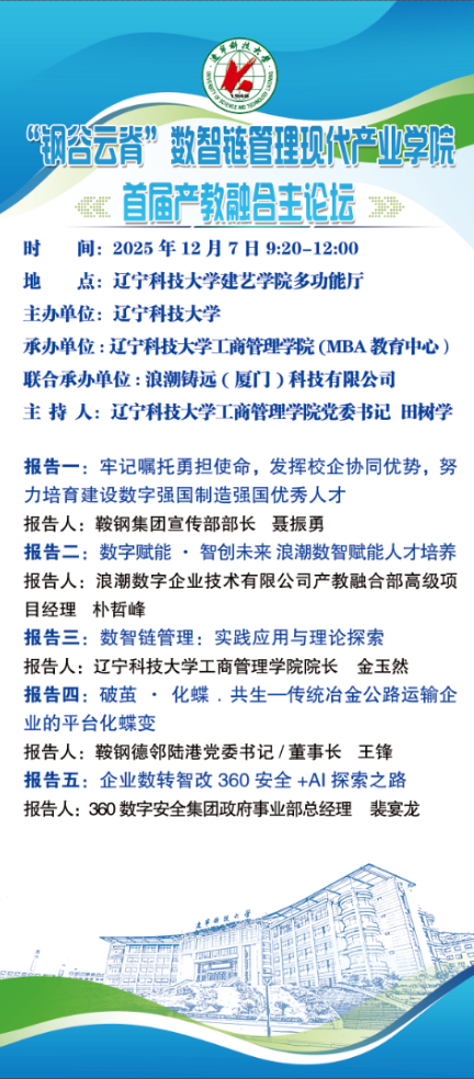 学术预告:“钢谷云脊”数智链管理现代产业学院首届产教融合主论坛