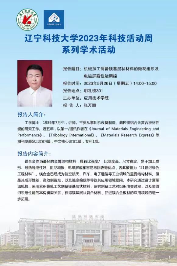 【科技活动周学术预告】机械加工制备镁基层状材料的微观组织及电磁屏蔽性能调控