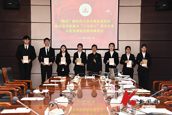 10月27日,MK体育在线(中国)唯一官方网站团委召开“三全育人”综合改革示范案例建设指导推进会,进一步提升“钢花”新时代大学生理论宣讲团理论宣讲促振兴“三全育人”综合改革示范案例建设成效。校党委副书记孙晓华出席会议并作指导讲话。校院团干部代表及24名校院大学生理论宣讲团成员代表参加会议。